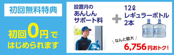 ウォーターボトルの料金は割引価格が適用となり、あんしんサポート料については、ご利用されるウォーターサーバー毎に異なりますのでご確認ください。
